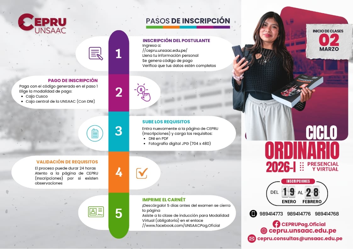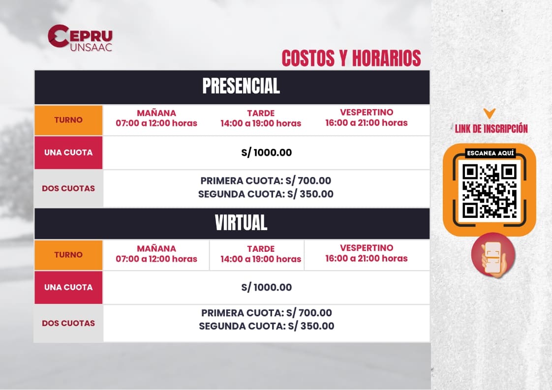 • PRESENCIAL (En las nuevas instalaciones del CEPRU – Ciudad Universitaria de Perayoc)